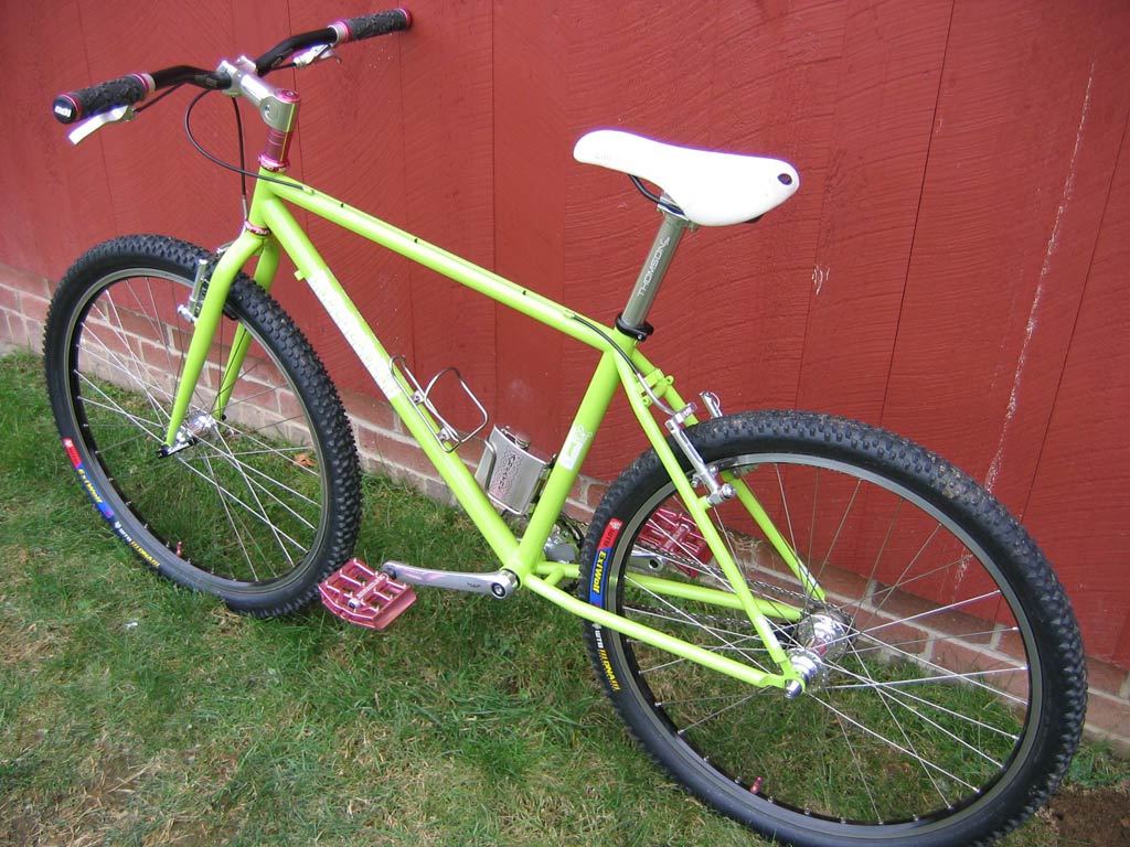 Comments: Originally known as the Fish Bike because of a crazy one off paint job by Mike Flanigan, the frame was repainted in February ’07 and a matching 1-inch rigid fork was fabricated at the same time.